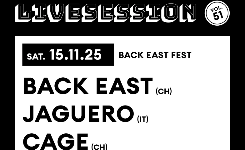 LIVE SESSION: BACK EAST FEST: BACK EAST, JAGUERO, CAGE info@planetspade.ch, Wankdorffeldstrasse 96, 3014 Bern Tickets