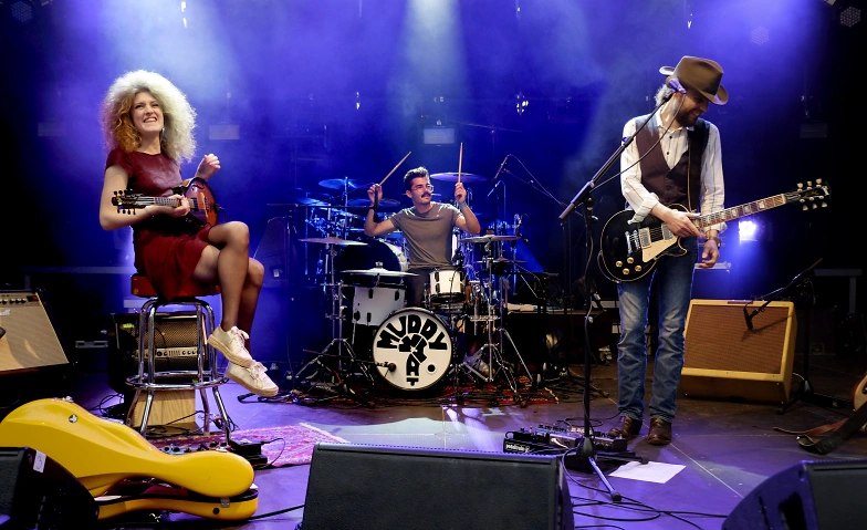 Mit einem atemberaubenden Mix aus Tradition und Innovation katapultiert MUDDY WHAT? den Blues charmant ins Heute. Die Geschwister Fabian und Ina Spang sowie Michi Lang gehören zu den jüngsten und gleichzeitig fleißigsten Livemusikern Deutschlands. Nicht nur, weil MUDDY WHAT? bei der „German Blues Challenge 2021“ zur besten deutschen Bluesband gekürt wurde, gelten sie als Shooting Stars der Livemusikszene. Auf der „Spider Legs Tour 2023“ bereist das Trio internationale Bühnen und Festivals, macht dabei Halt in Schweden, Frankreich, Portugal etc. und begeistert sein Publikum weltweit mit erfrischendem und einzigartigem New-Blues-Sound. Die drei Musiker überzeugen neben technischem Können vor allem mit viel Gefühl, Spielfreude und Energie. „Niemand spielt den Blues schöner“, schreiben die Nürnberger Nachrichten. Dabei immer unverwechselbar: Der brillante Sound von Inas Mandoline.