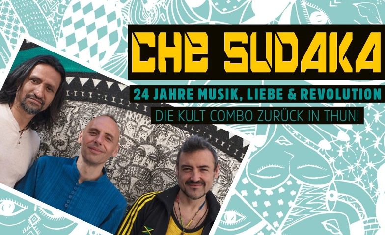 Che Sudaka – 24 Jahre Musik, Liebe & Revolution! Seit 2002 bringen Che Sudaka aus Barcelona mit ihrer explosiven Mischung aus Cumbia, Ska, Punk und lateinamerikanischem Herzblut Bühnen auf der ganzen Welt zum Beben. Über 2.000 Shows in 50 Ländern – und überall dieselbe Botschaft: Musik ist Liebe, Musik ist Freiheit! Was als Traum von ein paar argentinischen und kolumbianischen Freunden begann, ist heute Kult: Zehn Alben voller Energie, Lebensfreude und sozialem Bewusstsein – mit Texten, die bewegen, vereinen und Hoffnung schenken. Jetzt steht das große 25-jährige Jubiläum vor der Tür – und Che Sudaka feiern es so, wie sie es am besten können: laut, ehrlich und mit offenen Armen. 2026 gibt’s ein neues Album, ein zweites Buch und eine Doku, die ihre unglaubliche Reise erzählt. Leo, Kacha und Sergio laden dich ein, mitzufeiern und das Leben zu umarmen – mit derselben Überzeugung, die sie seit dem ersten Tag trägt: «Die Guten sind noch immer die Mehrheit!»