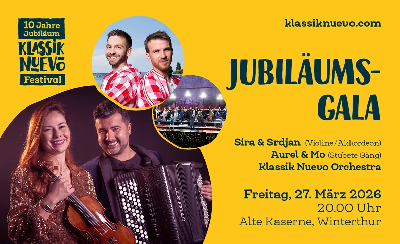 Mit der Jubiläums-Gala eröffnet das Klassik Nuevo Festival Winterthur am Freitag, 27. März 2026, ein besonderes Festivalwochenende. Im Zentrum des Abends stehen Sira Eigenmann und Srdjan Vukasinovic – Ehepaar, Gründer und künstlerisches Herz von Klassik Nuevo –, die diesen Konzertabend dem 10-jährigen Bestehen des Orchesters widmen.