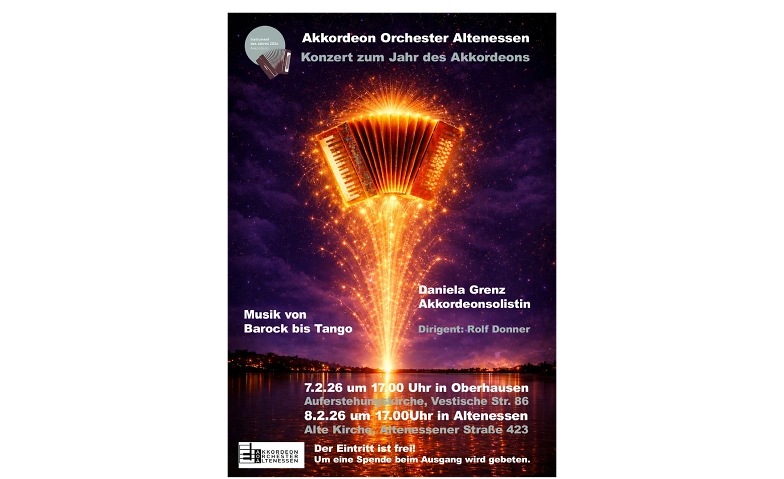Seien Sie dabei, wenn das Akkordeon Orchester Altenessen und die Solistin Daniela Grenz in zwei ganz besonderen Konzerten die Vielfalt und Schönheit des Akkordeons in den Mittelpunkt stellen.