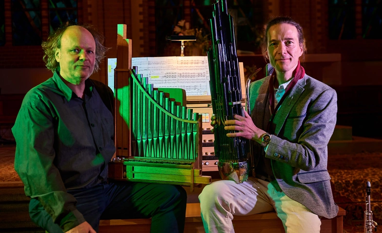 Der Berliner Organist Volker Jaekel (Orgel, Portativ) und der Saxophonist Gert Anklam (Saxophone, Sheng) erschaffen orchestrale Klanglandschaften, gefühlvolle Improvisationen und ungewöhnliche Bearbeitungen klassischer Werke. Neben der großen Orgel kommen zwei seltene Instrumente zum Einsatz: die chinesische Mundorgel Sheng und das mittelalterliche Portativ.