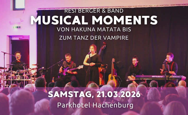 Am Samstag, den 21. März 2026, erwartet die Besucher des Parkhotels in Hachenburg ein ganz besonderes musikalisches Erlebnis. Im Rahmen der Konzertreihe „Musical Moments – Von Hakuna Matata bis Tanz der Vampire“ präsentiert die Sängerin Resi Berger gemeinsam mit ihrer Band ein mitreißendes Programm voller Emotionen, Leidenschaft und zeitloser Melodien aus bekannten Musical- und Filmklassikern.