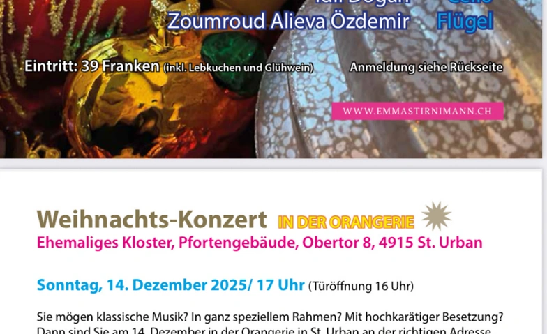 Weihnachtskonzert Emma Stirnimann Orangerie, Pfortengebäude ehemaliges Kloster, Obertor 8, 4915 Sankt Urban Tickets