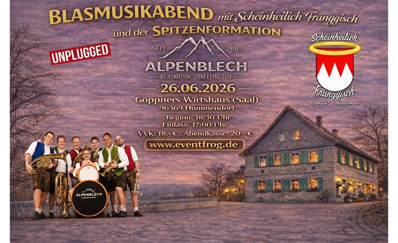 Blasmusikabend mit Scheinheilich Fränggisch und der Spitzenformation Alpenblech.