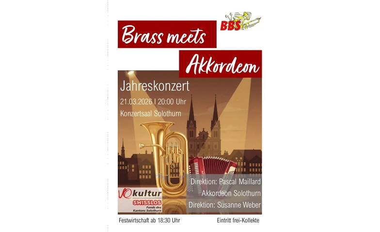 Erleben Sie das Jahreskonzert der Brass Band Solothurn unter dem spannenden Motto „Brass meets Akkordeon“. Gemeinsam mit Akkordeon Solothurn präsentieren wir ein mitreissendes Programm voller Klangvielfalt und musikalischer Highlights.