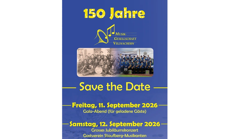 Die Musikgesellschaft Villnachern feiert im Jahr 2026 ihr 150-jähriges Bestehen. Dieses Jubiläum soll nicht nur ein Rückblick auf die Vereinsgeschichte sein, sondern vor allem ein lebendiges Fest sein für die Bevölkerung, für Ehemalige, für Musikfreunde und für Partner aus der Region.