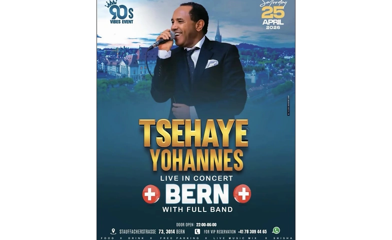 On April 25, 2026, experience an unforgettable concert filled with iconic hits, emotional ballads, and vibrant cultural rhythms. Tsehaye Yohannes is known for his timeless voice and songs that connect generations — this will be a night full of energy, nostalgia, and celebration.