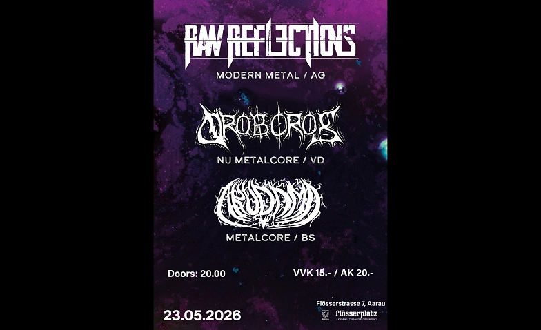 Raw Reflections (AG),  Oroboros (VD), Akudama (BS) Flösserplatz, Flösserstrasse 7, 5000 Aarau Tickets