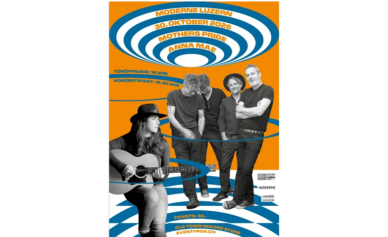 ...Die beiden Acts tun sich zusammen, um gemeinsam einen Konzertabend in Luzern zu gestalten. Mothers Pride als «Local Heroes» und die Sängerin & Liederschreiberin aus dem Hinterland feiern dieses spezielle Konzertformat und bieten dem Publikum eine breite Palette an Stilen: eine Mischung aus Anna Maes gefühlvollem Chanson, Country und Folk und dem erdigen, nostalgischen Pop-Rock von Mothers Pride.