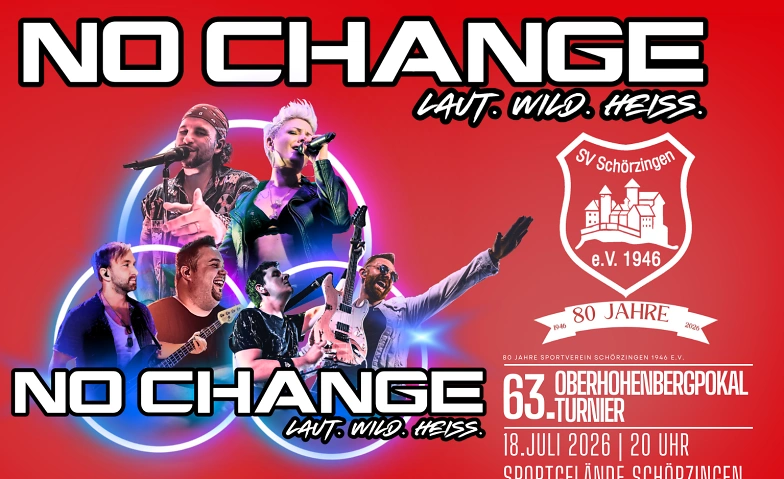 Spektakuläre Show-Highlights und eine druckvollen Live-Sound beeindruckende Bühnenshow treffen auf NO CHANGE macht gemeinsam mit EUCH die Nacht zum Tag und garantiert eine schweißtreibende Live-Party! Ob Kostüme, Pyro oder neuste LED-Videotechnik: NO CHANGE liefert pure Bühnenenergie und bringt die Stimmung zum Kochen– in jeder Location! Mit explosiven Medleys reiht sich Hit an Hit – ein nahtloser Übergang durch sämtliche Genres und Partyhits der letzten Jahrzehnte: NON-STOP Party für jeden Musikgeschmack - GARANTIERT!