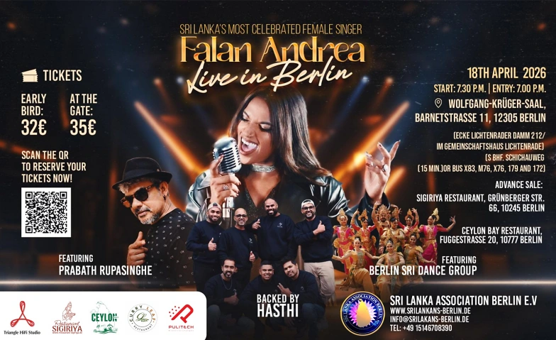 Advance Sale Paper Tickets at: Sigiriya Restaurant, Grünberger Str. 66, 10245 Berlin, Ceylon Bay Restaurant, Fuggestrasse 20, 10777 Berlin. Early bird price valid till 10th April 2026.