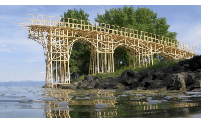 Fünf ikonische Grossplastiken des Künstlerduos erscheinen als fotografische Echos am Bodenseeufer. Zwischen Bewegung und Stillstand entsteht ein neuer Blick auf Raum, Material und Kontext.