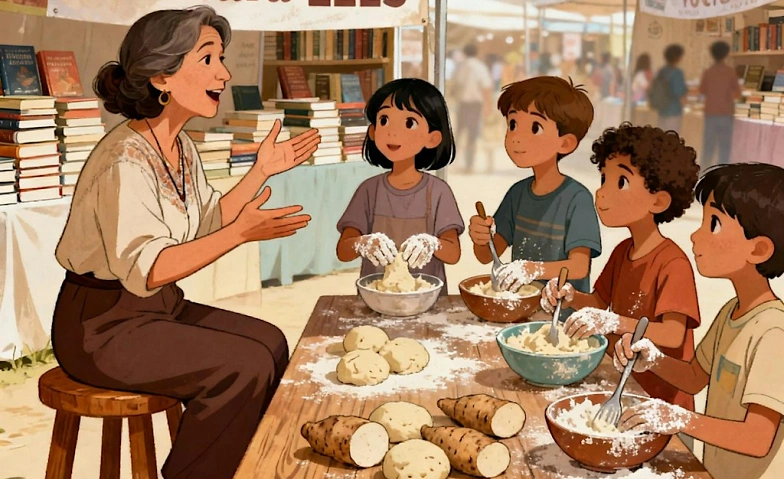 Amasando recuerdos: sabores que viajan es una actividad dirigida a niños y niñas de 4 a 7 años en el marco de la Feria LEES (Literatura en español en Suiza). El cuentacuentos se desarrolla en paralelo a la preparación de pan elaborado con almidón de Yuca, que los niños prepararán con ayuda de una monitora y que podrán llevarse a casa. Explorarán las raíces de este producto ancestral, base culinaria de tantos paises hispanoamericanos, conectándolas con su propia historia de migración.