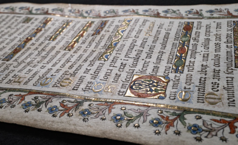 Im Besitz der Korporation Luzern befindet sich eine ganz besondere Handschrift aus dem 14. Jahrhundert. Statt als Buch wurde der Text auf einem langen Pergamentstreifen geschrieben und reich verziert – ein Auftragswerk für die Mailänder Herrscherfamilie Visconti. Der Inhalt steht in auffälligem Kontrast zur prunkvollen Inszenierung: Es handelt sich um die Busspsalmen des toskanischen Intellektuellen Francesco Petrarca (1304–1374).