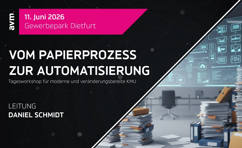 Viele Unternehmen arbeiten noch mit Papier, Excel, E Mails und gewachsenen Abläufen und spüren täglich, wie viel Zeit und Energie dabei verloren geht. In diesem interaktiven Tagesworkshop holst Du Dein Unternehmen genau dort ab, wo es heute steht. Du lernst, wie Du Prozesse sichtbar machst, Engpässe erkennst und Schritt für Schritt den Weg von papierbasierten Abläufen hin zu strukturierten und automatisierbaren Prozessen gehst. Praxisnah, verständlich und ohne Theorielast. Ein ehrlicher und wirksamer Einstieg in nachhaltige digitale Transformation für KMU, die wirklich vorankommen wollen.