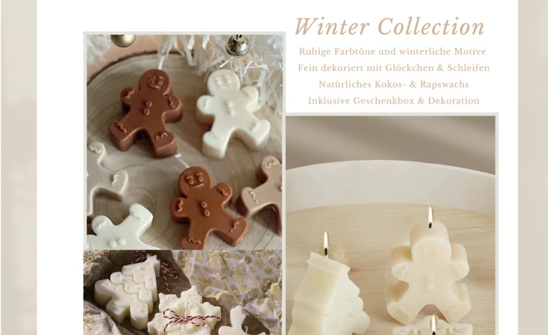 Wir arbeiten mit natürlichen Materialien und feinen Details wie schlichten Formen, dezenten Schleifen oder kleinen Glöckchen – inspiriert von der stillen Ästhetik der Winterzeit.