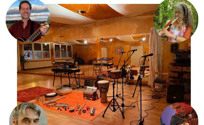 Es stehen bereit: E-Piano und Synthesizer, Akkordeon und Gitarre, Shruti Box, Trommeln, Ocean Drum, Regenmacher, Djembe und weitere Percussion. Mikrofone laden dazu ein, der eigenen Stimme kraftvoll und individuell Ausdruck zu verleihen.