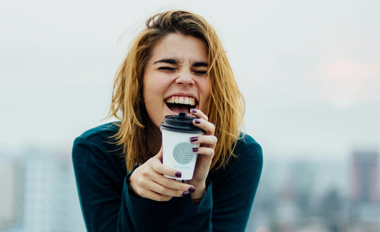 Credits: https://unsplash.com/de/fotos/lachelnde-frau-mit-becher-5SUgSzP7klk