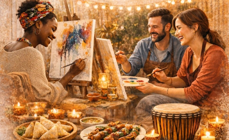 Tauche ein in einen Abend an dem Kunst, afrikanische Aromen und Musik miteinander verschmelzen🎨✨️