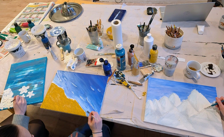Freuen Sie sich auf einen inspirierenden Abend voller Farbe, Genuss und Geselligkeit in lockerer Atmosphäre. Nutzen Sie die Gelegenheit, neue Freunde zu treffen und sich kreativ auszutauschen. Alle Materialien wie Farbe und Leinwand sind inklusive – bringen Sie einfach Ihre Freude am Malen mit!