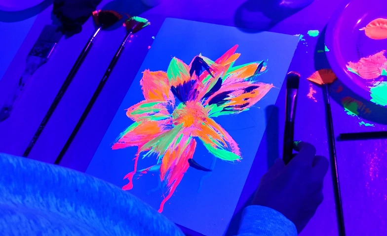 • Lerne die Grundlagen der Arbeit mit Neonfarben und lichtreaktiven Materialien.