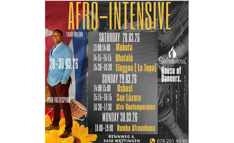Afrocuban-Intensive  with Ivan Valdespino -Third Edition Salsabrosa Wettingen, Rennweg 6, 5430 Wettingen Tickets