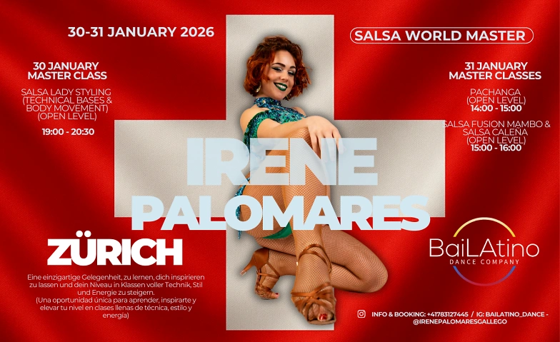 Salsa World Master Zürich 2026 bietet dir eine exklusive Gelegenheit, mit Irene Palomares, internationaler Salsa-Künstlerin und Master-Trainerin, zu trainieren.