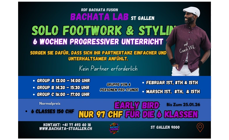 SOLO FOOTWORK & STYLING 6 KURS Coach Wil Dance Studio, Wildeggstrasse 16, 9000 St. Gallen Tickets