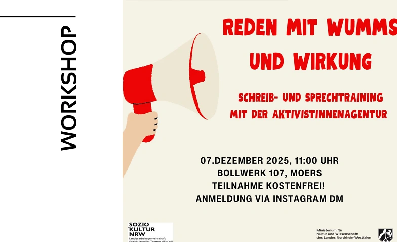 Reden mit Wumms und Wirkung – Schreib- und Sprechtraining mi Bollwerk 107, Zum Bollwerk 107, 47441 Moers, Bollwerk 107, Zum B, 47441 Moers Tickets