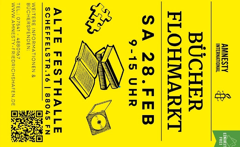 Großer Bücherflohmarkt von amnesty international am 28.02.26 Turn- und Festhalle, Scheffelstraße 16, 88045 Friedrichshafen Tickets