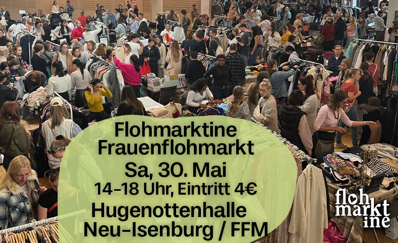 Samstag, den 30. Mai in Neu-Isenburg bei Frankfurt!🫶✨ Flohmarktine Frauenflohmarkt, das nachhaltige Shoppingevent in der Hugenottenhalle in Neu-Isenburg!🛍️🌿 Du liebst Kleidung, Vintage & Accessoires? Bei uns gibt es alles, was dein Frauenherz begehrt!🫶