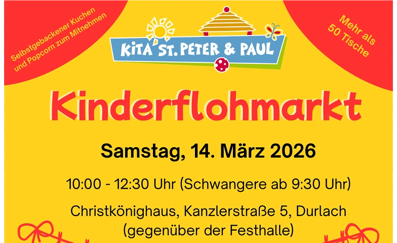 Der Flohmarkt findet am 14.03.2026 im Christkönighaus, Kanzlerstraße 5 in KA-Durlach, statt.