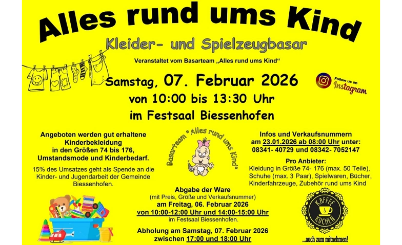 Am 07.02.2026 findet von 10-13:30 Uhr wieder unser großer, beliebter Kinderbasar in Biessenhofen statt.