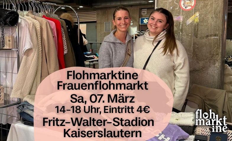 Samstag, den 07. März in Kaiserslautern!🫶✨ Flohmarktine Frauenflohmarkt, das nachhaltige Shoppingevent auf über 1500qm in der Fanhalle Nord im Fritz-Walter-Stadion des 1.FC Kaiserslautern !🛍️🌿 Du liebst Kleidung, Vintage & Accessoires? Bei uns gibt es alles, was dein Frauenherz begehrt!🫶