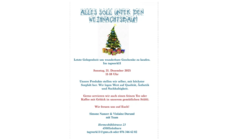 tagwerk 11, Hermesbühlstrasse 23, Solothurn, CHKategorie: Märkte / Sonntagsverkauf