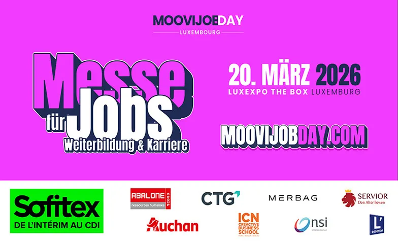 Moovijob.com, die führende luxemburgische Jobbörse, präsentiert Ihnen die 16. Ausgabe der größten Messe für Jobs, Weiterbildung und Karriere in Luxemburg und der Großregion: Moovijob Day Luxembourg!