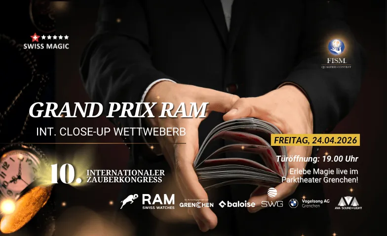 10. Int. Zauberkongress «GRAND PRIX RAM» Close-Up Wettbewerb Parktheater Grenchen, Lindenstrasse 41, 2540 Grenchen Tickets