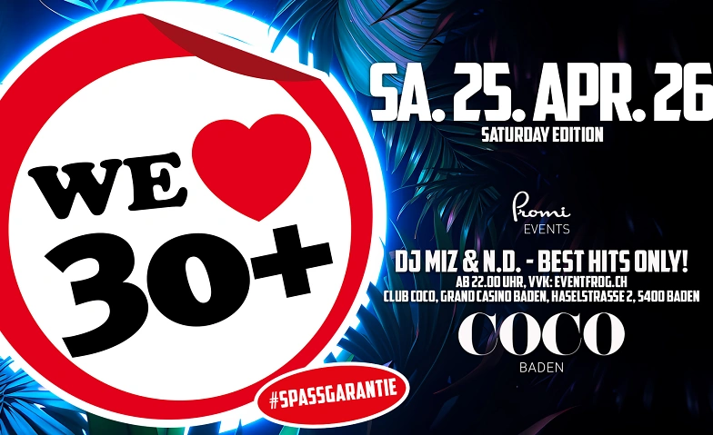 We Love 30+ Party Coco Baden, Haselstrasse 2, 5400 Baden Tickets