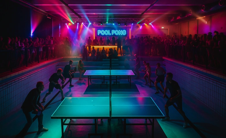 Altes Hallenbad? Check. Tische? Check. Aber das hier ist mehr als ein Turnier – wir haben eine einzigartige Pong-Arena gebaut, in der alles passieren kann.