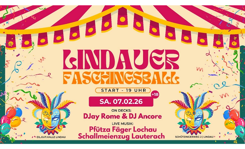 LINDAUER FASCHINGSBALL - Eilguthalle Lindau - Sa. 07.02.2026 Eil.Gut.Halle, Schützingerweg 2, 88131 Lindau (Bodensee) Tickets
