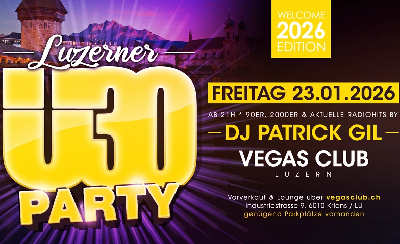 Luzerner Ü30 Party - Welcome 2026 Edition VEGAS Club Lucerne, Industriestrasse 9, 6010 Kriens Tickets