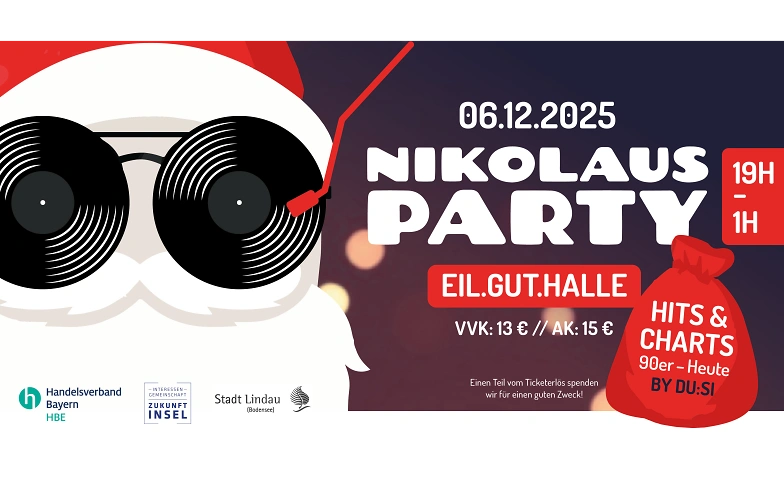 Nikolaus Party • Eilguthalle Lindau • 90er HITS bis HEUTE Eil.Gut.Halle, Schützingerweg 2, 88131 Lindau (Bodensee) Tickets