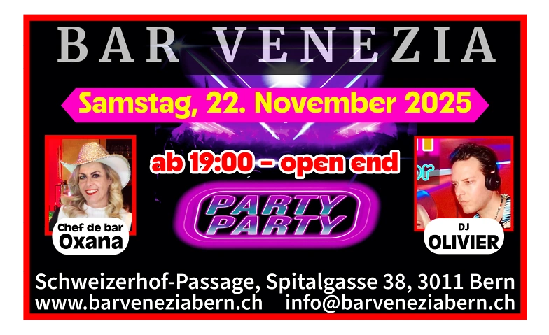 Bar Venezia, Schweizerhof-Passage, Spitalgasse 38, Bern, CHVeranstalter:in