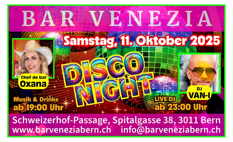 Bar Venezia, Schweizerhof-Passage, Spitalgasse 38, Bern, CHVeranstalter:in