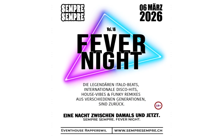 FEVER NIGHT - Sempre Sempre Vol.16 Eventhouse, Neue Jonastrasse 65, 8640 Rapperswil-Jona Tickets