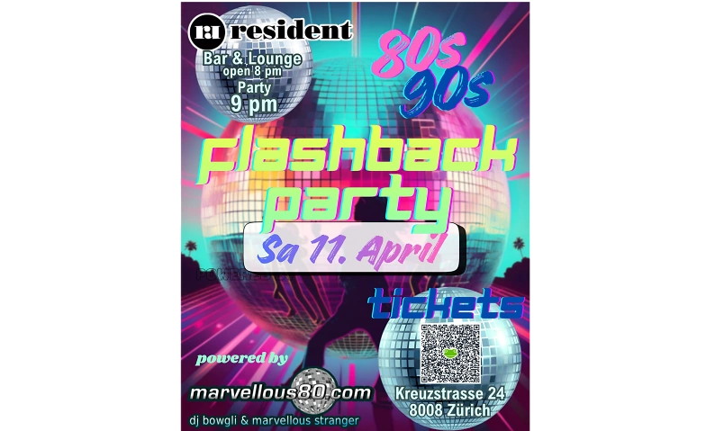 Flashback 80/90 Party by Marvellous80 - 11.04.2026 Resident Zürich, Kreuzstrasse 24, 8008 Zürich Tickets