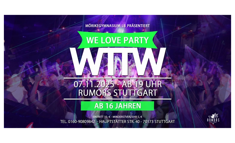 WTTW (ab 16 Jahren) - We LOVE Party Rumors Club Stuttgart, Hauptstätter Straße 40, 70173 Stuttgart Tickets