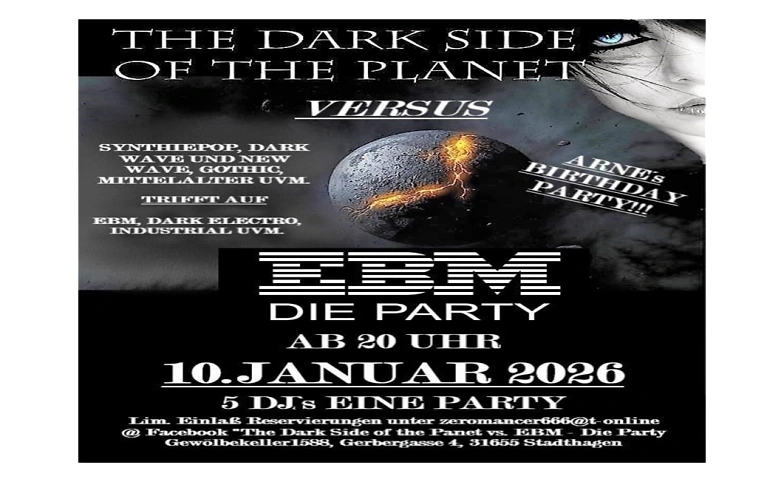 "The Dark Side of the Planet Versus EBM - Die Party" Gewölbekeller1588, Gerbergasse 4, 31655 Stadthagen Tickets