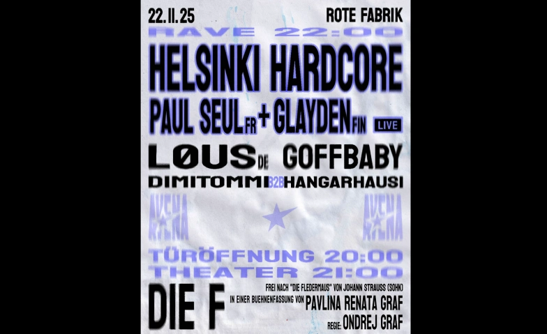 In „Die F“ treffen Walzerklänge auf Basslines, Masken auf Moral. Inspiriert von Johann Strauss’ „Die Fledermaus“ fragt das Stück nach der moralischen Verantwortung der Menschen füreinander – und nach der Lust, sich selbst zu verlieren. Zwischen Rausch, Wahrheit und Täuschung feiert das Ensemble das Theater als Fest – und die Party als Spiegel unserer Zeit.